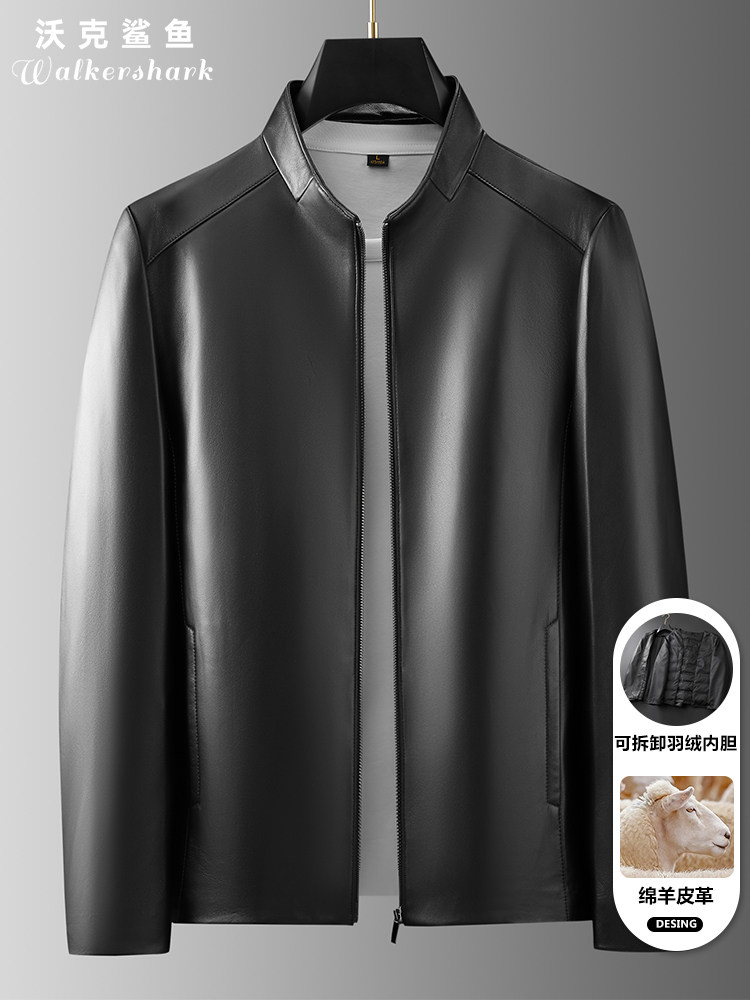 First-Layer Sheepskin Genuine Leather Jacket for Men, Spring and Autumn New Style, Business Casual, High-End, Middle-Aged Stand-Up Collar Leather Jacket