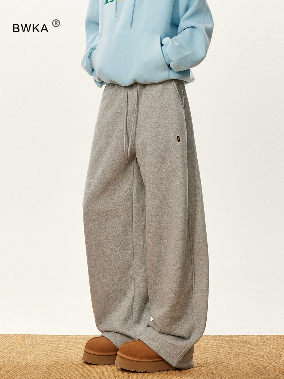 Bwka Fleece-Lined Sweatpants Cotton Pants for Women and Men, Autumn and Winter Trendy Brand Loose Drape Wide-Leg Pants Versatile Sports Straight-Leg Casual Pants