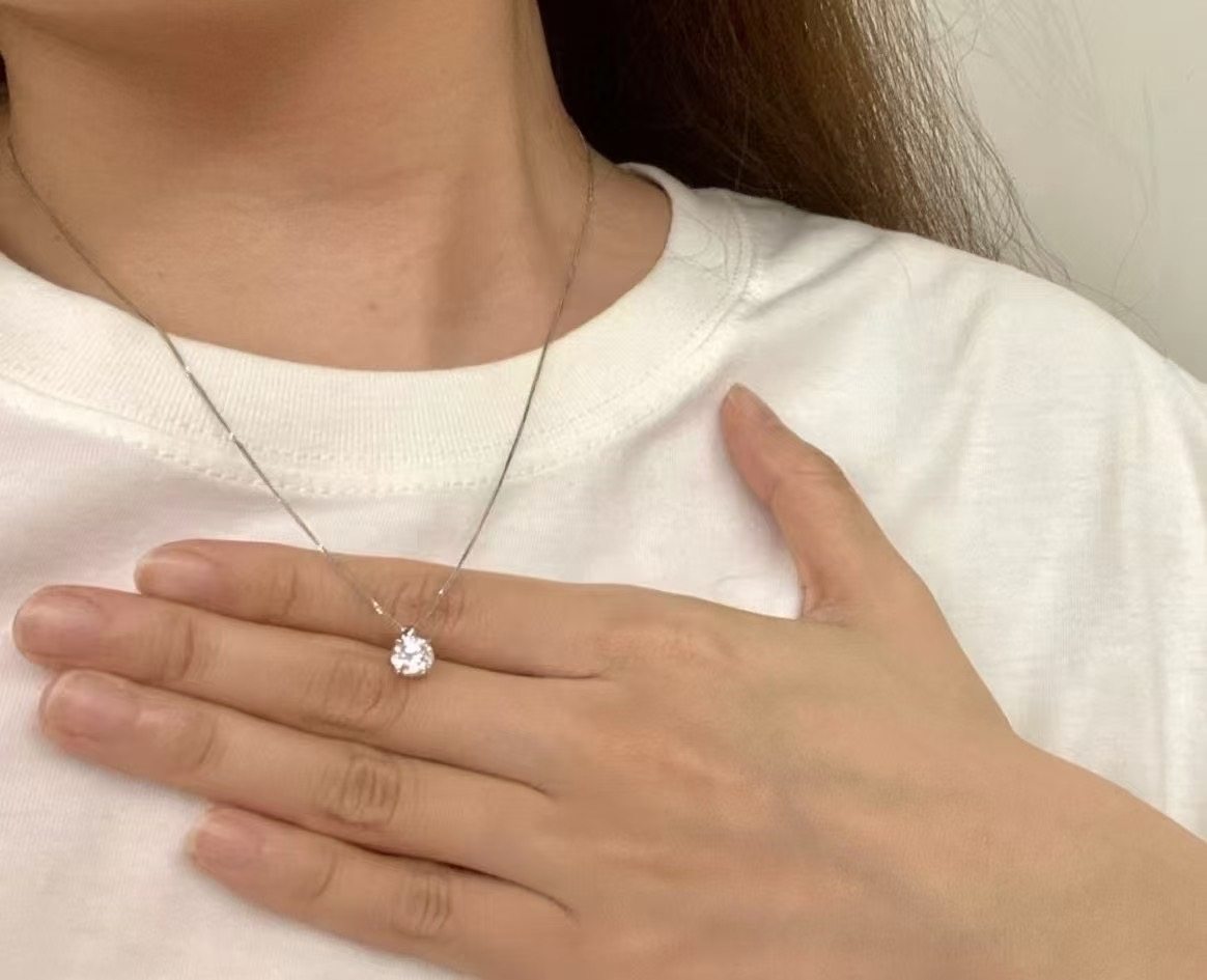 One Carat Cultivated Diamond 18K Gold Round Diamond Princess Necklace Ring Clavicle Chain Bull Head Four Prongs Six Prongs Bezel Setting