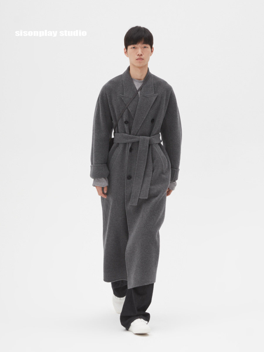 Sisonplay【Designer Brand】Simple, Casual, Loose-Fitting 100% Wool Double-Sided Wool Over-The-Knee Coat for Men
