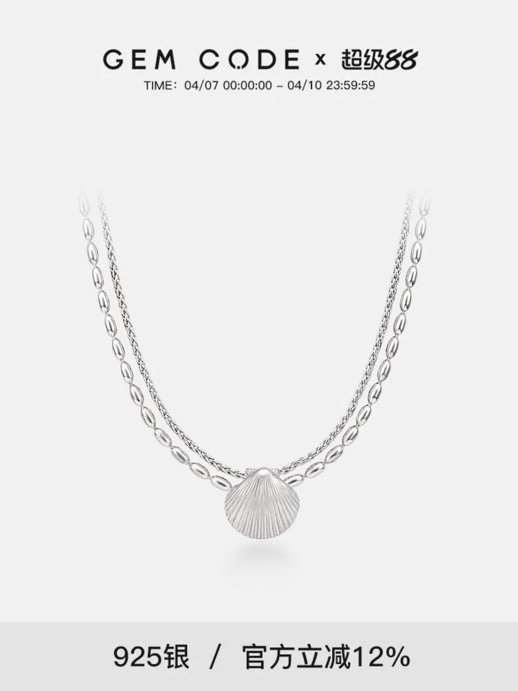 Gem Code Moon's Silver Coin Series 925 Silver Shell Necklace, a Versatile and Simple Chain That Can Be Worn in Many Ways