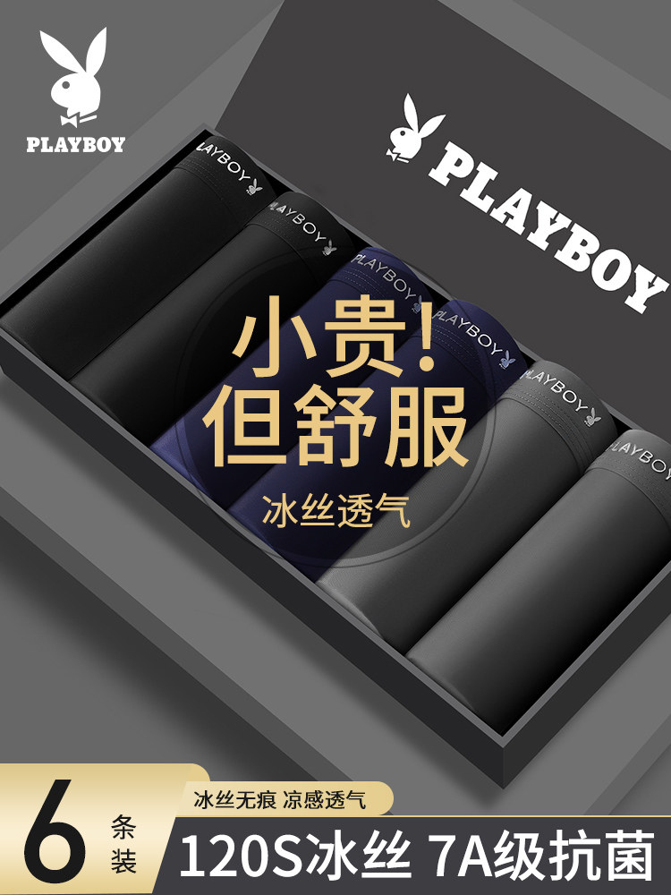 Playboy Men's Ice Silk Underwear, 2026 New Style Seamless Boxer Shorts for Men, Summer Thin Style