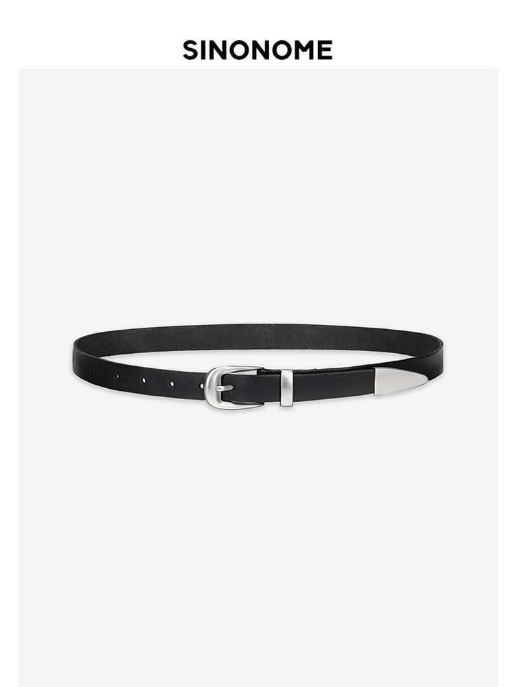 Sinonome Italian Imported First-Layer Cowhide Distressed Silver-Plated Buckle Belt Genuine Leather Horsehair Belt for Men and Women