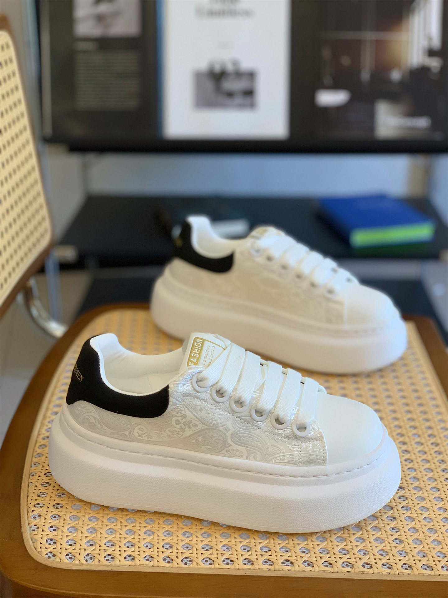 Hong Kong Style Printed Genuine Leather White Sneakers for Women 2026 Spring/Summer New Lightweight Breathable Thick-Soled Versatile Casual Sneakers