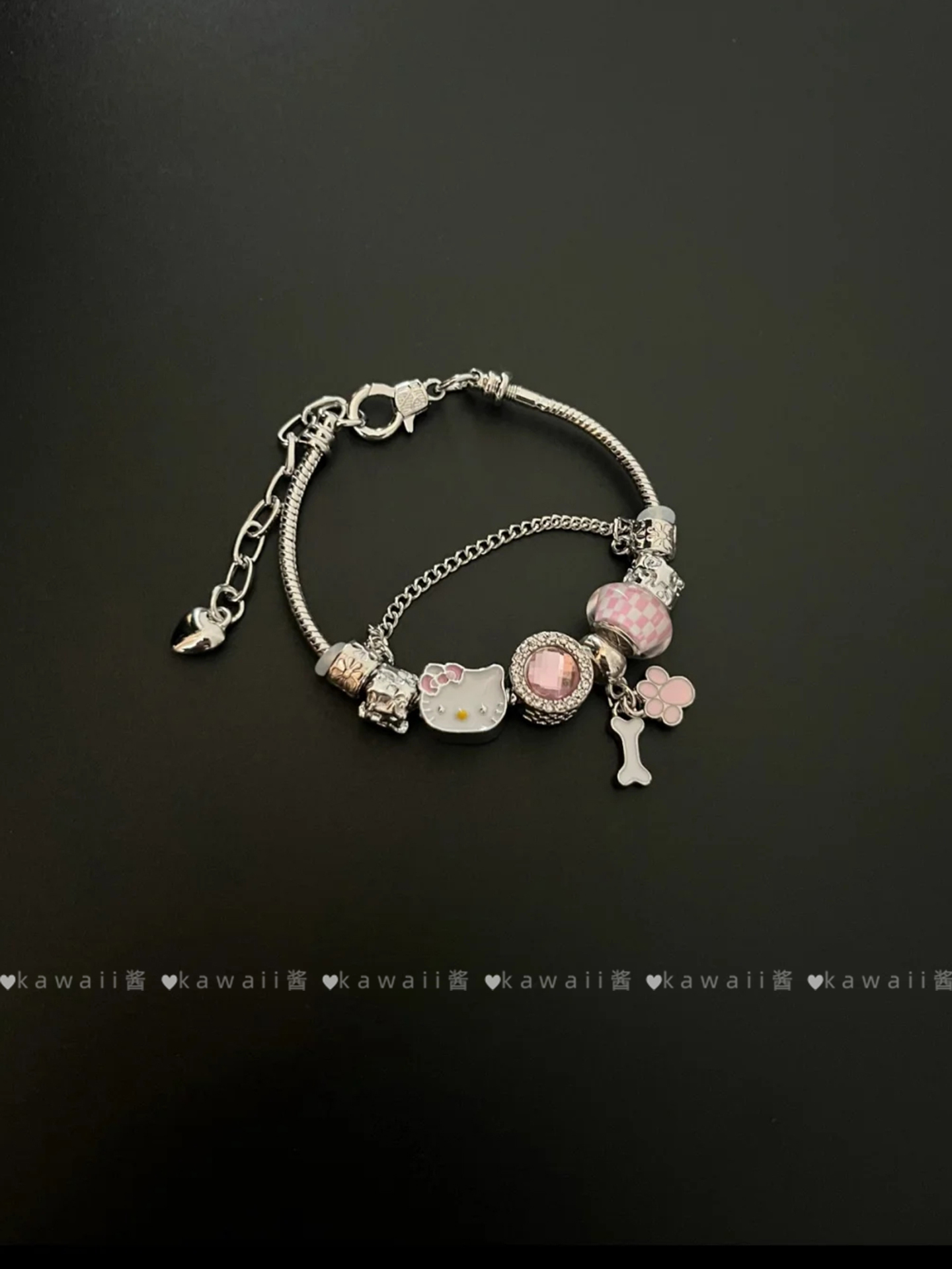 Sweet and Cute Pink Kitty Diamond-Encrusted Bracelet, Girly Heart Doll Cat Multi-Layer Bracelet, Fresh and Simple Jewelry