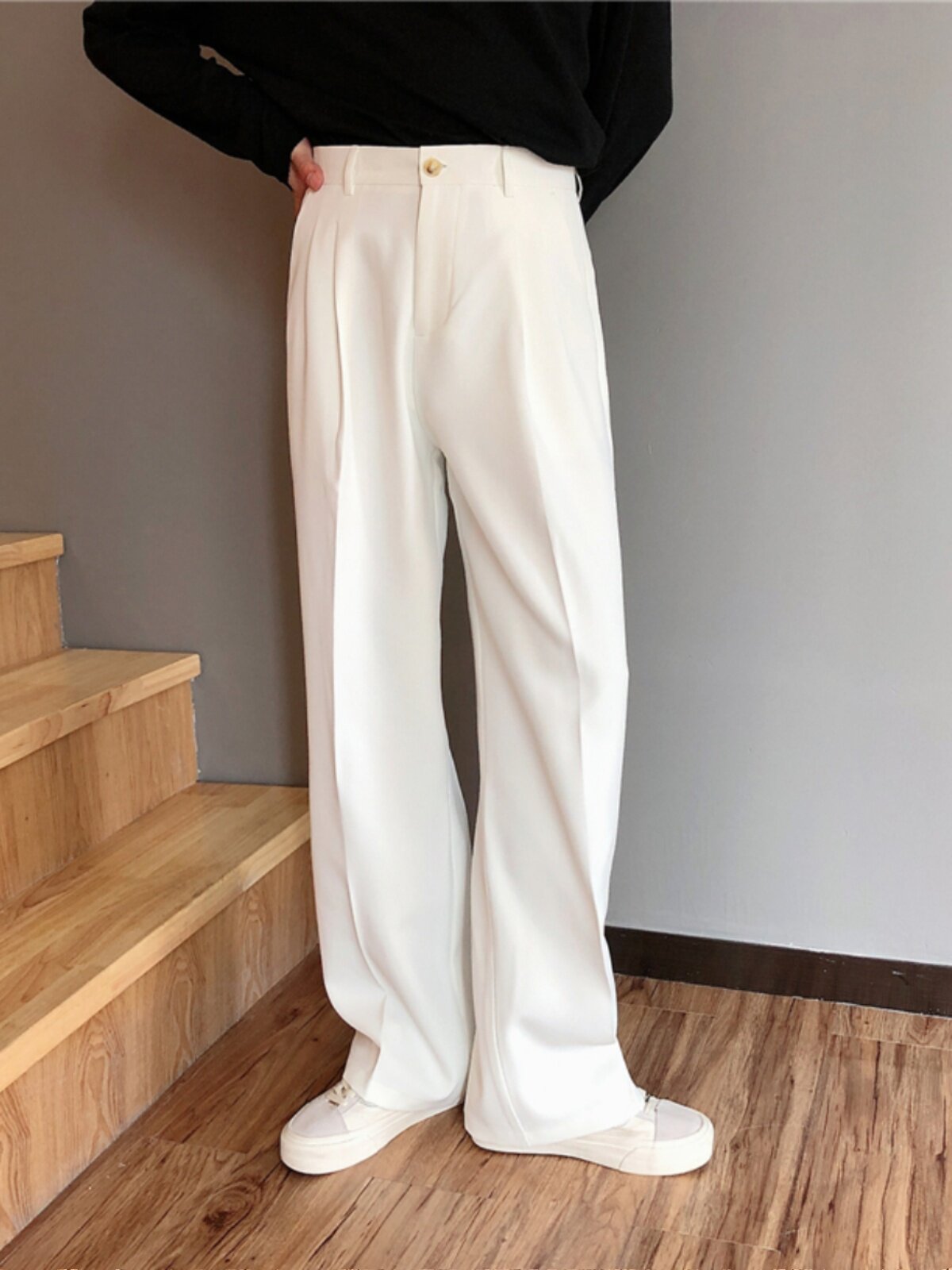 Drapey Suit Pants for Men, Trendy Spring and Autumn Floor-Length Wide-Leg Dress Pants, Casual Long Straight Loose Trousers