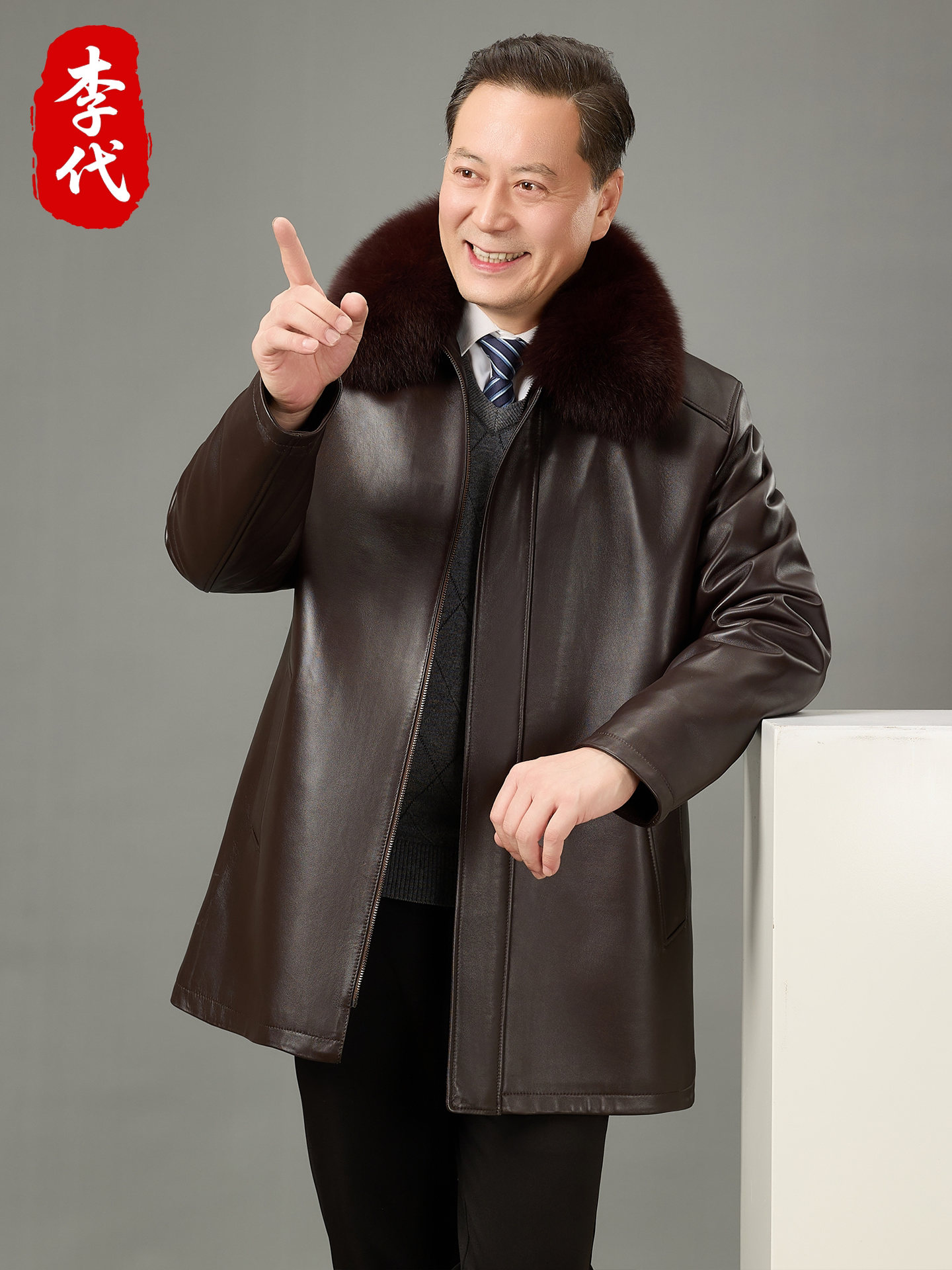 Haining Original Powerful Aura Mid-Length Leather Jacket Slim Fit Double-Breasted Lace-Up Waist Fashion Versatile Coat Women's Clothing