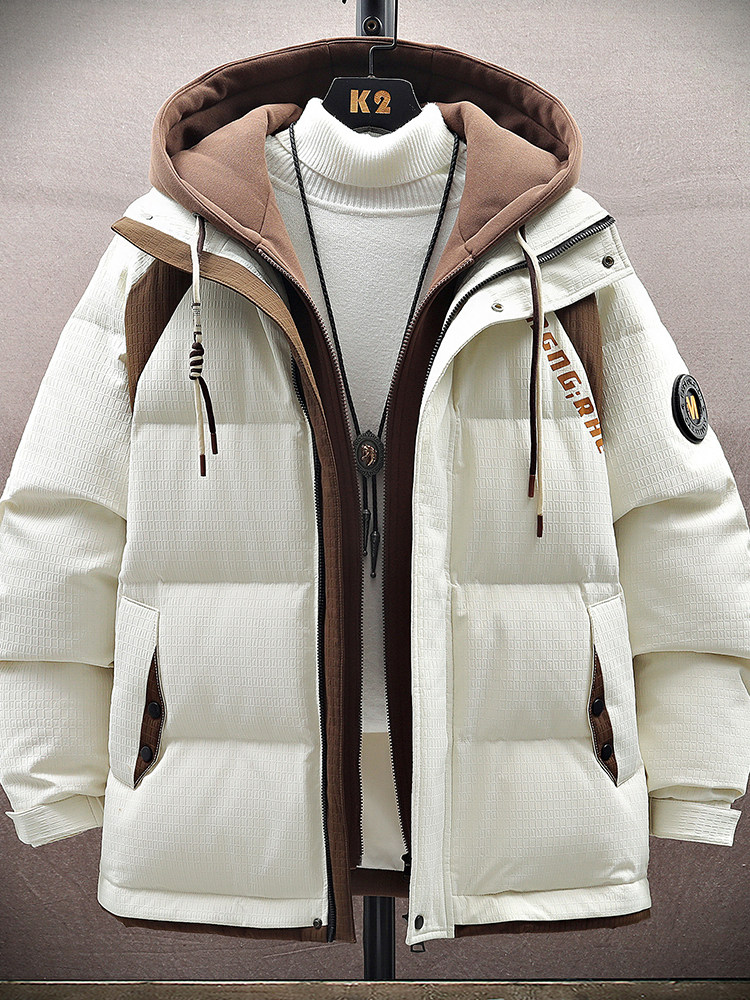 Fake Two-Piece Cotton Coat for Men, Winter Trendy Brand Loose down Cotton Jacket for Teenagers, Thickened Outerwear for Middle and High School Students