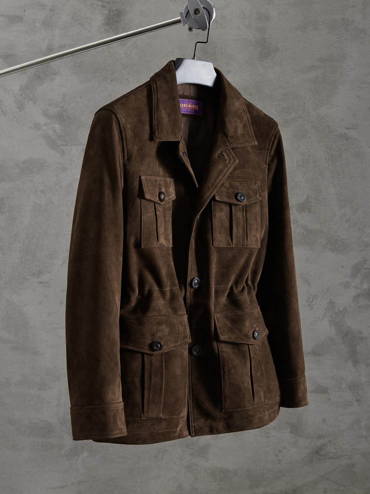 Rl Series Mixed Cashmere Lambskin Mid-Length Lapel Hunting-Style Suede Men's Jacket Old Money Style Retro Jacket