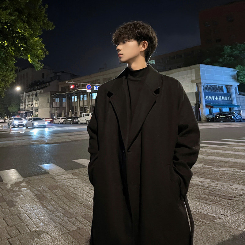 Clanfit Woolen Coat Men's Autumn and Winter Thickeneded Warm Korean Style Trendyy Handsome Mid-Length Windbreaker Jacket