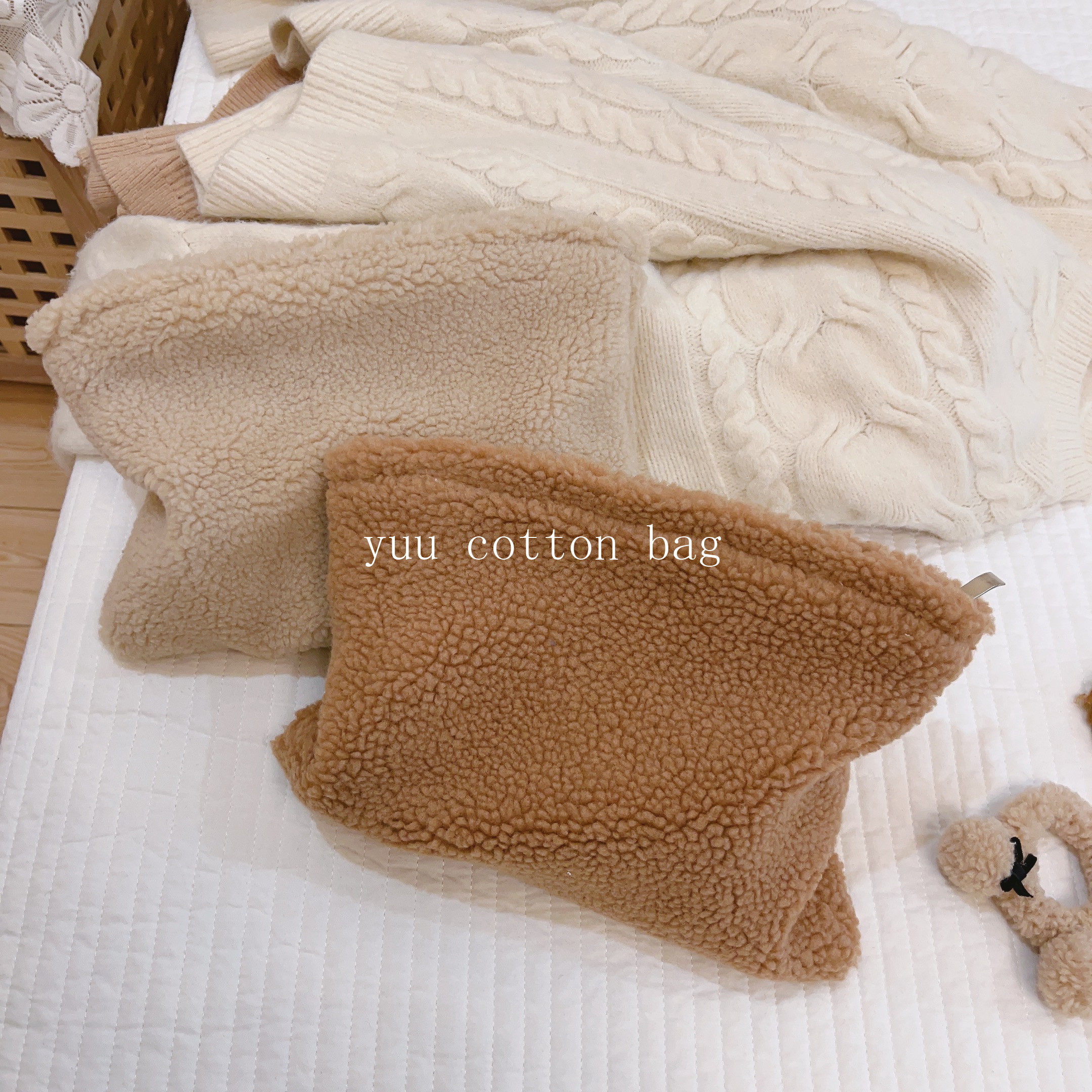 【Yuu Cloth Bag】Solid Color Lamb Wool Cosmetic Bag Women's Clutch Bag Winter New Soft and Warm Furry Bag