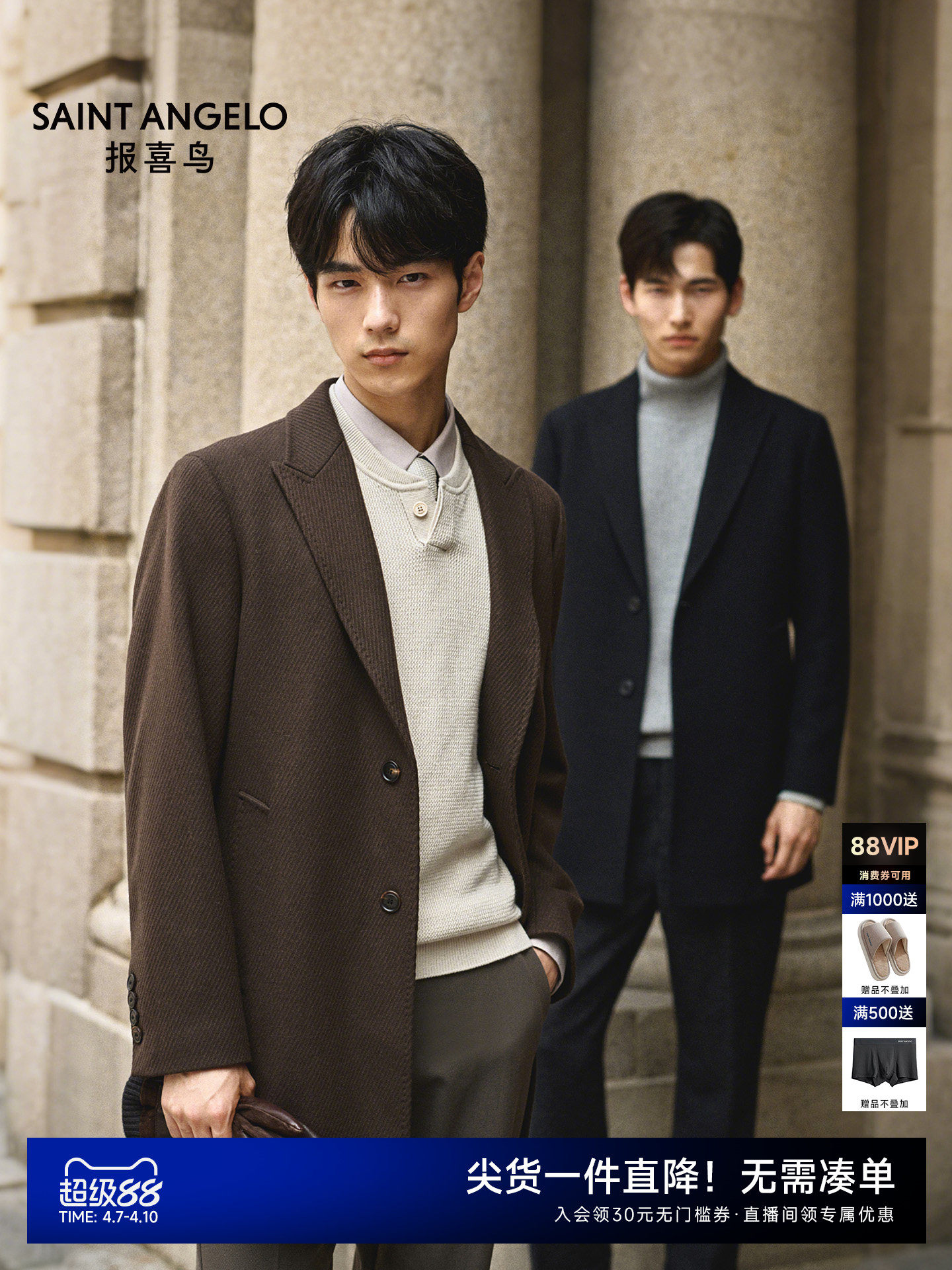 【Chister 100% Wool】Xibiniao Autumn/Winter New Men's Woolen Coat Business Casual Mid-Length Jacket