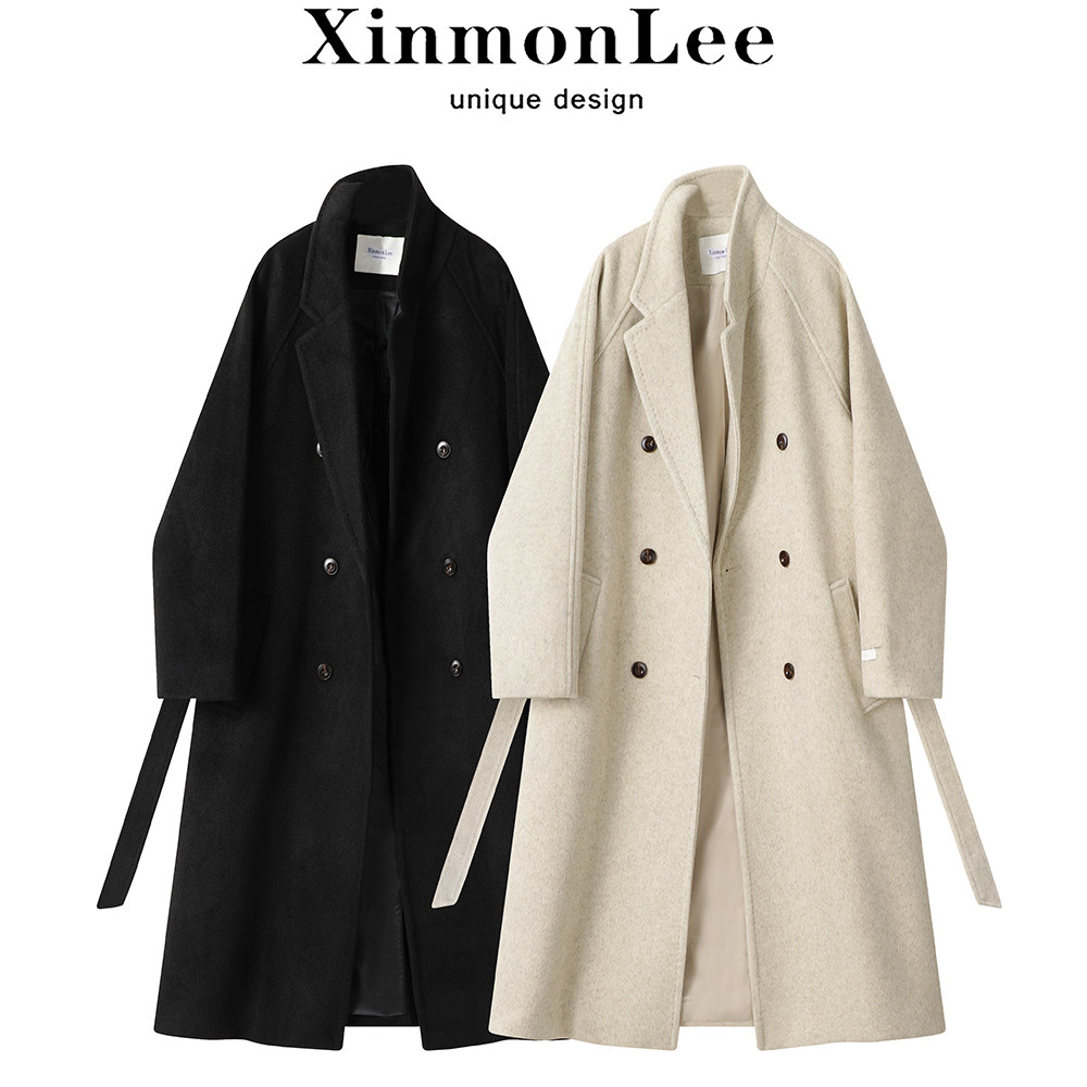 Xinmonlee This Year's Popular Mid-Length Woolen Coat for Women, New Winter Korean Style Thickened Black Coat