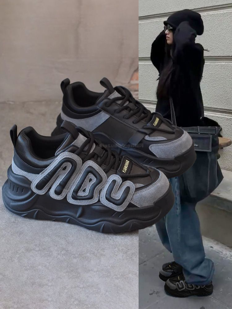 Hong Kong Style Height-Increasing Lightweight Casual Sneakers for Women 2025 Spring and Autumn New Velvet-Lined Retro Thick-Soled Genuine Leather Dad Shoes