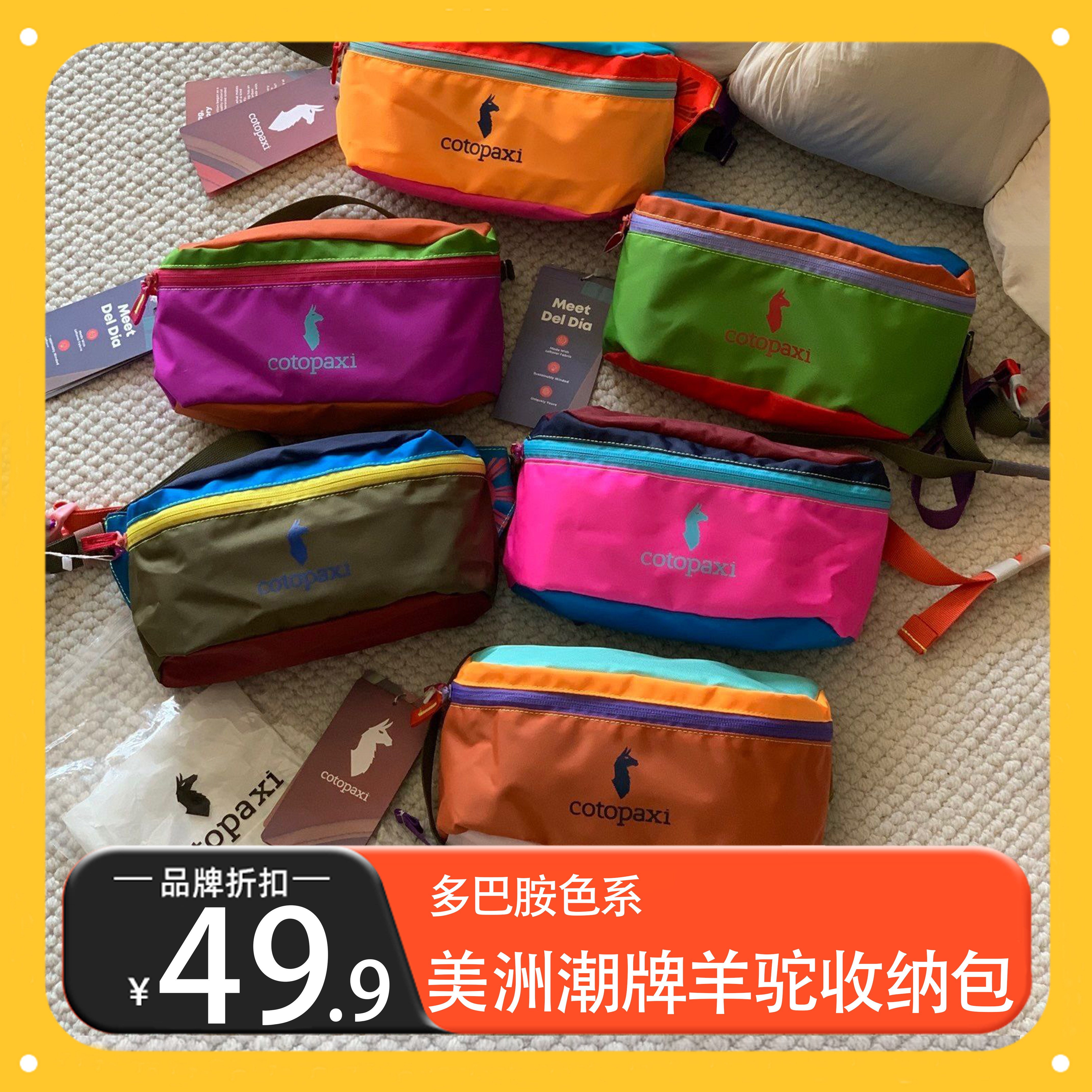 American Alpaca Color-Block Dopamine Waist Bag Couple Waterproof Crossbody Bag Travel Sports Portable 3L Large Capacity Chest Bag