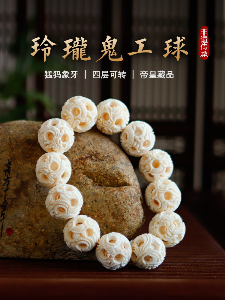 Wuyangtang Mammoth Tooth Carving Purely Handmade Ghostly Ball Bracelet for Play, Collection, and Gift Giving to Leaders