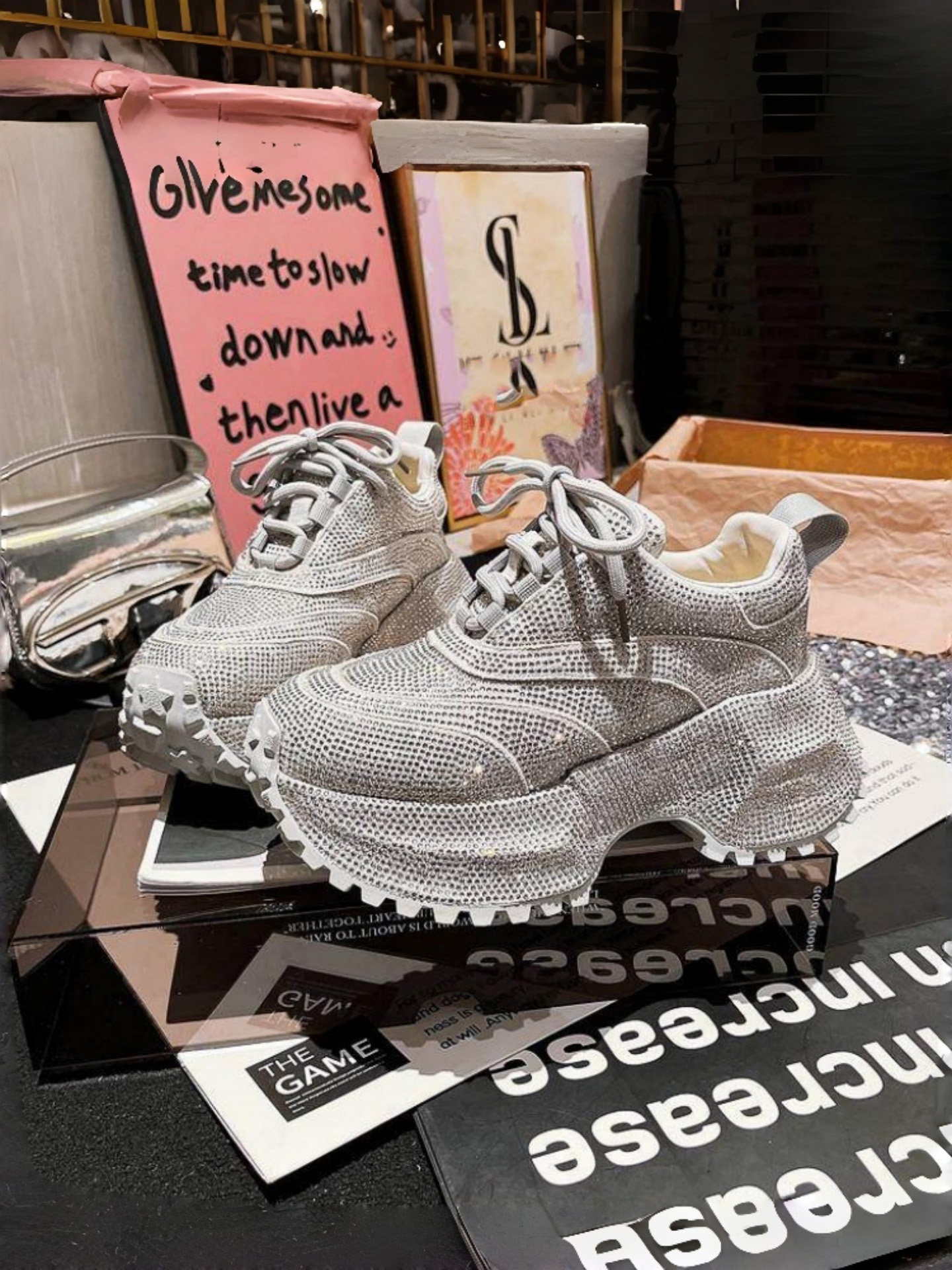 Hong Kong Rhinestone Platform Thick-Soled Height-Increasing Dad Shoes for Women 2026 Spring and Autumn New Versatile Breathable Casual Sports Shoes Trendy