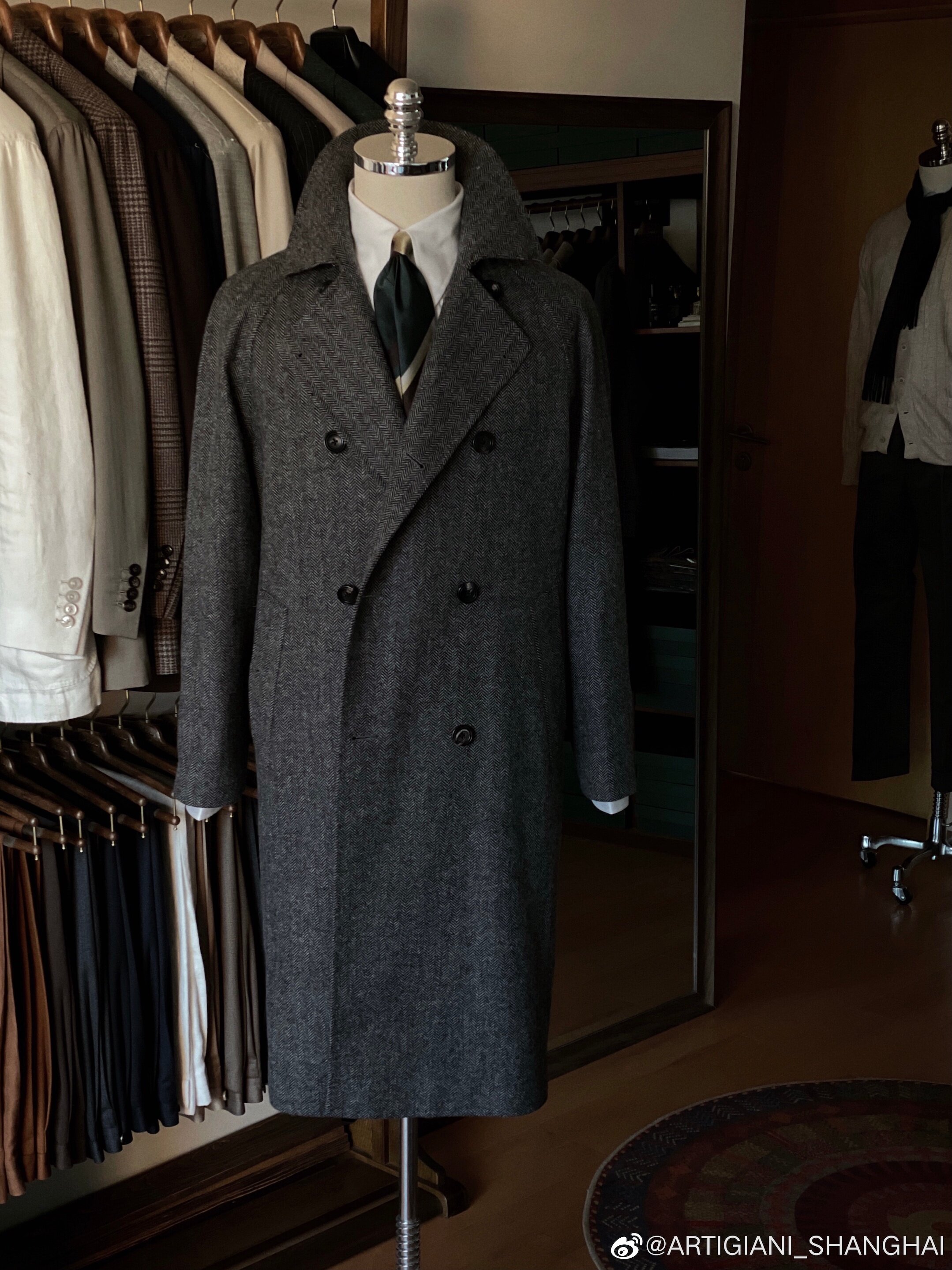 Artigiani Naples Handmade Coat Italian Luxury Old Money High-End Herringbone Wool Double-Breasted Coat