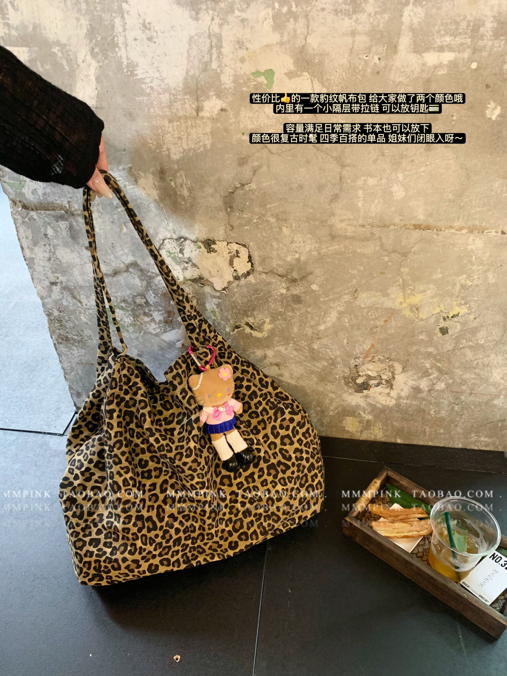 Mmmpink Korea ins Casual Retro Leopard Print Tote Bag for Women, Fashionable, Relaxed, Large Capacity, Versatile Canvas Bag