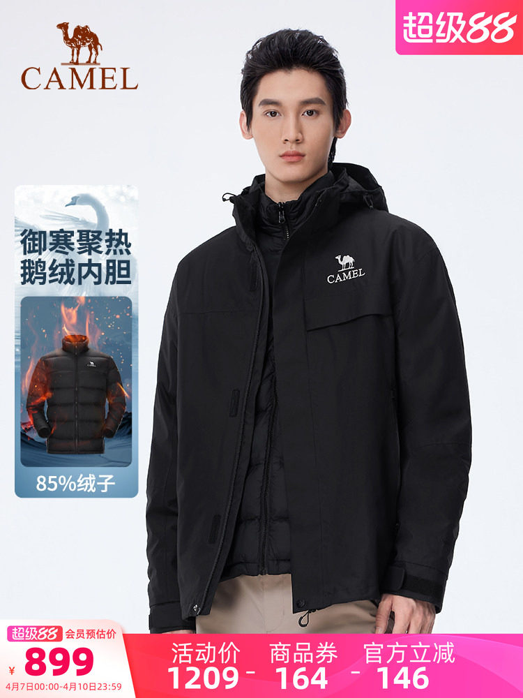 【Down Jacket】Camel Outdoor 3-in-1 down Jacket for Men and Women, Waterproof and Windproof Mountaineering Jacket for Winter