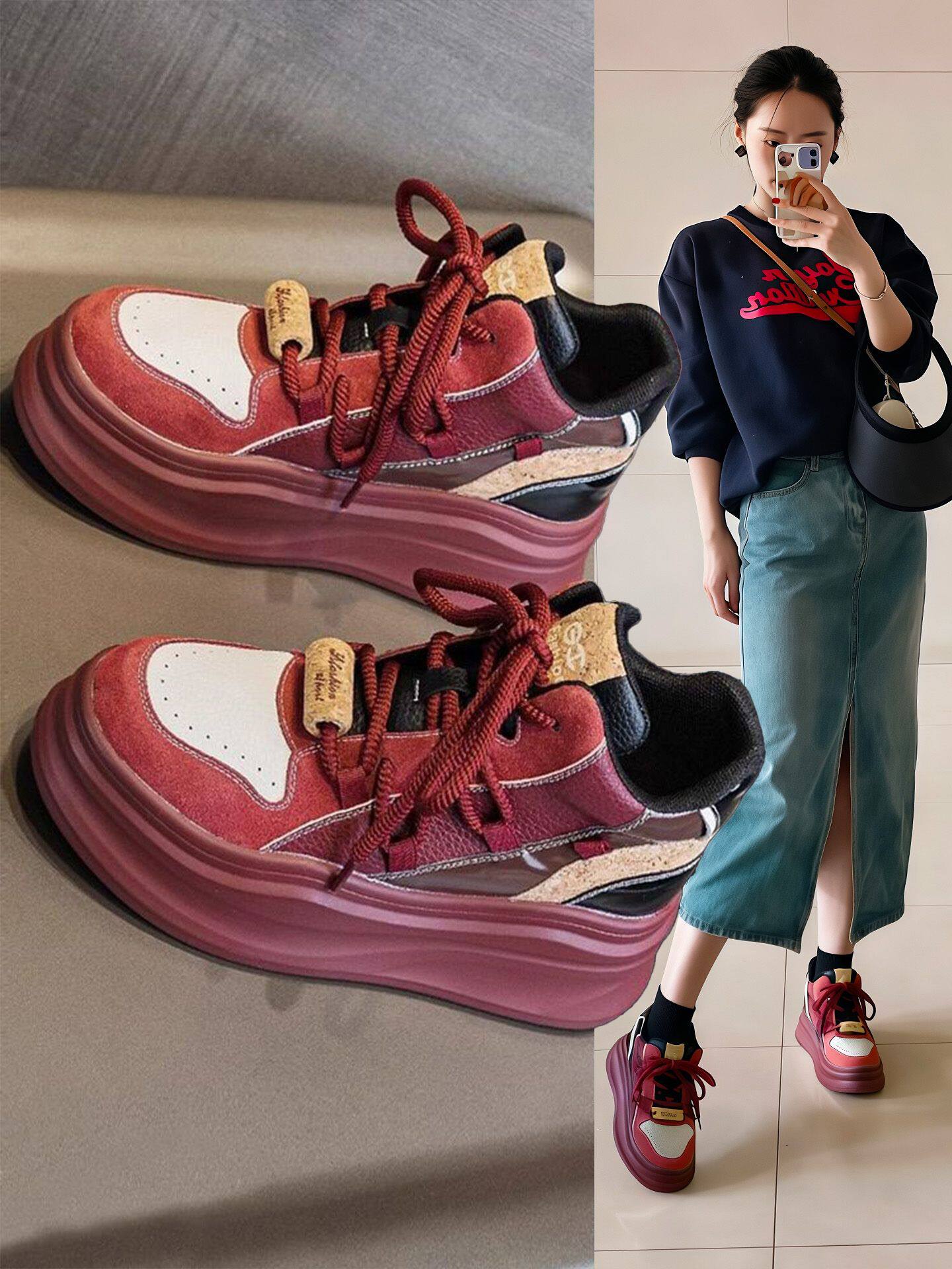 Italy Sanli~ Retro Thick-Soled Height-Increasing German Training Shoes for Women, Round-Toe Lace-Up Suede Casual Sneakers