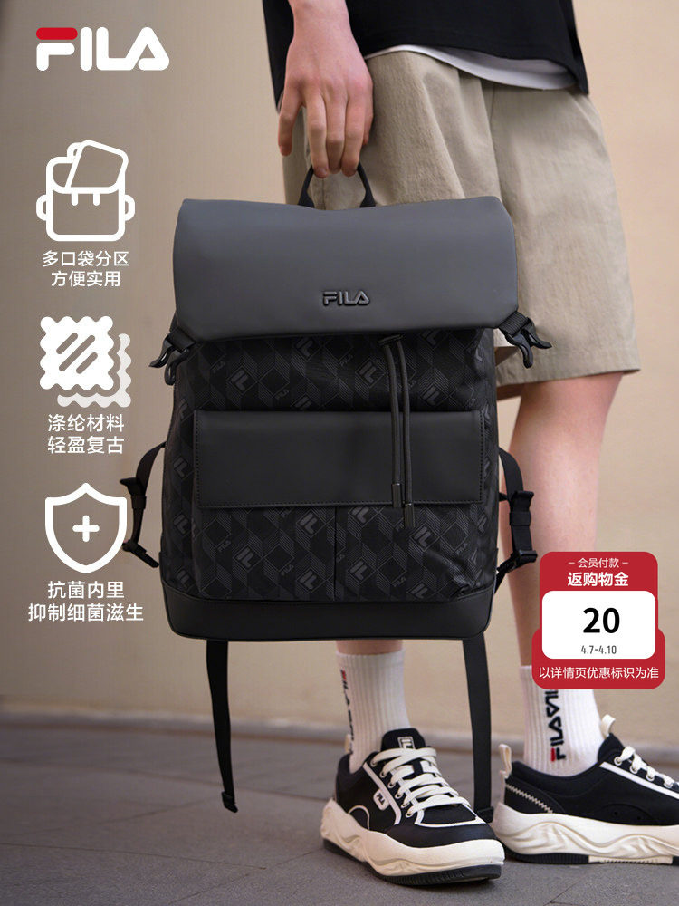 Black Warrior | Fila Men's Backpack Business Commuter Backpack Presbyopic Pattern School Bag Large Capacity Men's Computer Bag