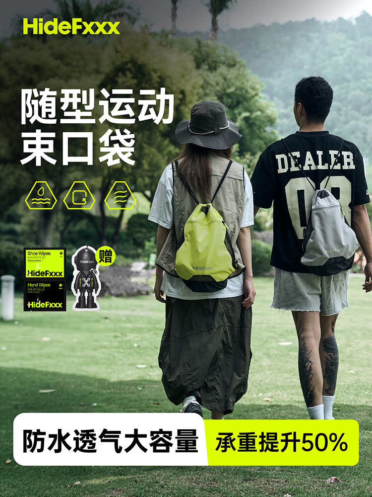 Hidefxxx Casual Sports Drawstring Backpack Large Capacity Sports Hiking Waterproof Mesh Storage Bag