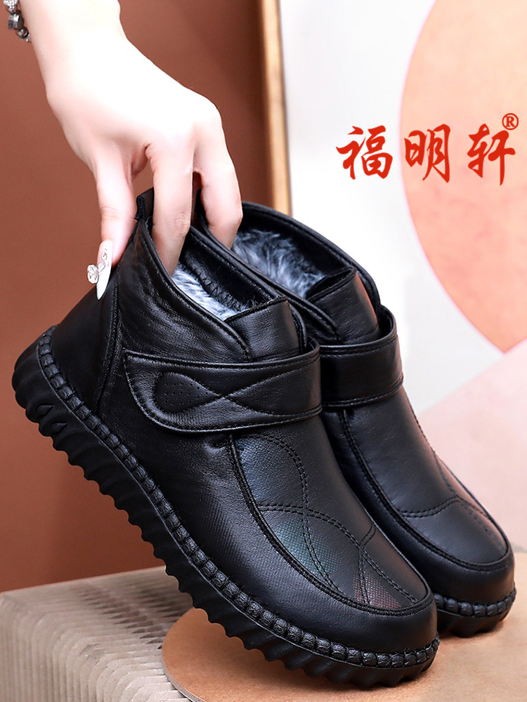 Winter Old Beijing Cloth Shoes for Women, Cotton Shoes with Extra Fleece for Warmth, Elderly Shoes, Waterproof, Non-Slip, Short Boots for Old Ladies, High-Top, Soft Sole