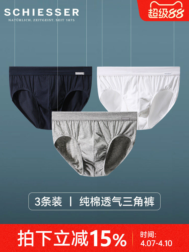 3-Pack of German Schiesser Men's Underwear, Pure Cotton Briefs, Men's Mid-Waist All-Cotton Shorts