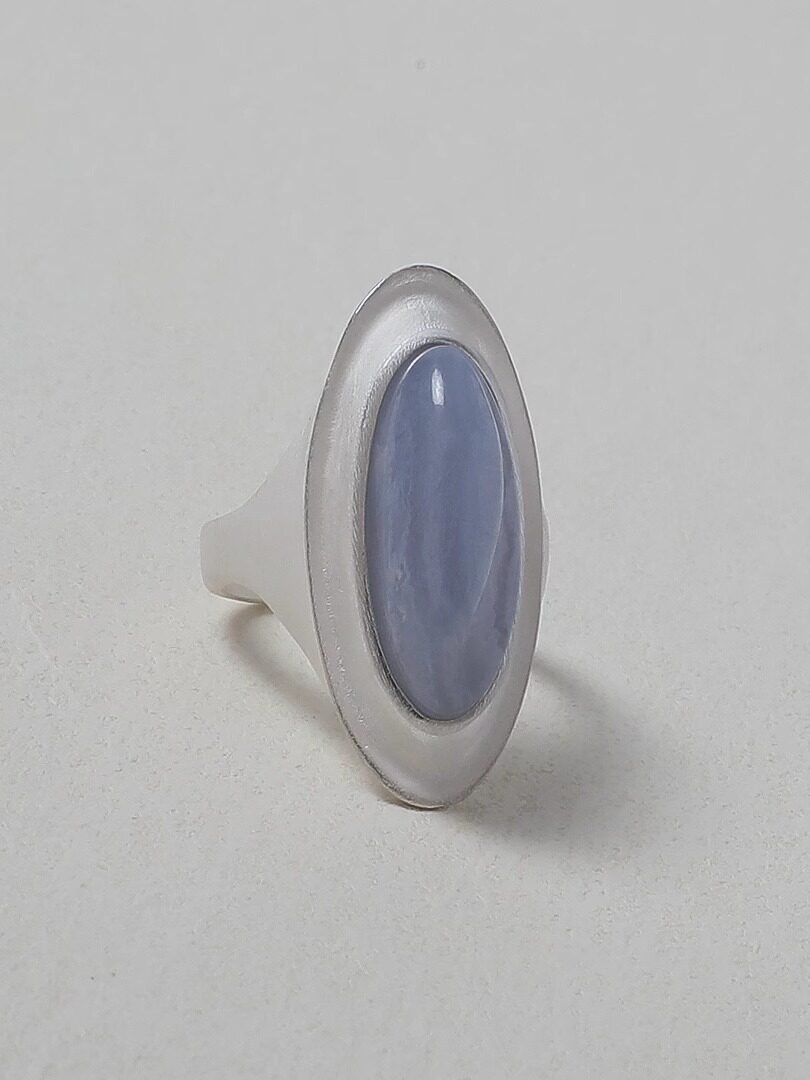 Olio E Aceto Oil and Vinegar Sterling Silver Bone and Shell Ring White Crystal Blue Agate