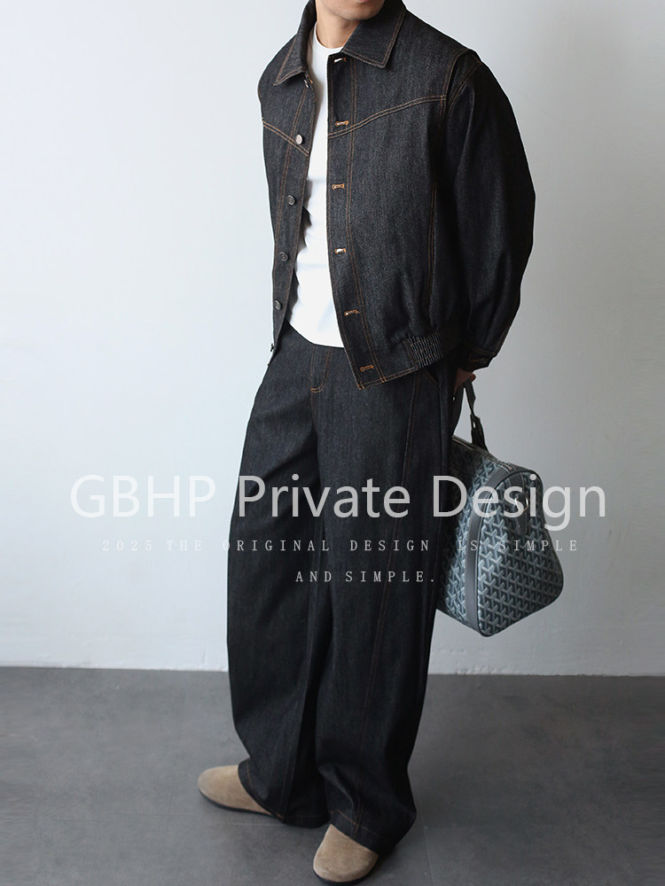 Gbhp American Retro Heavy Washed Denim Jacket Set Men's Casual Business Commuting Versatile Lapel Jacket
