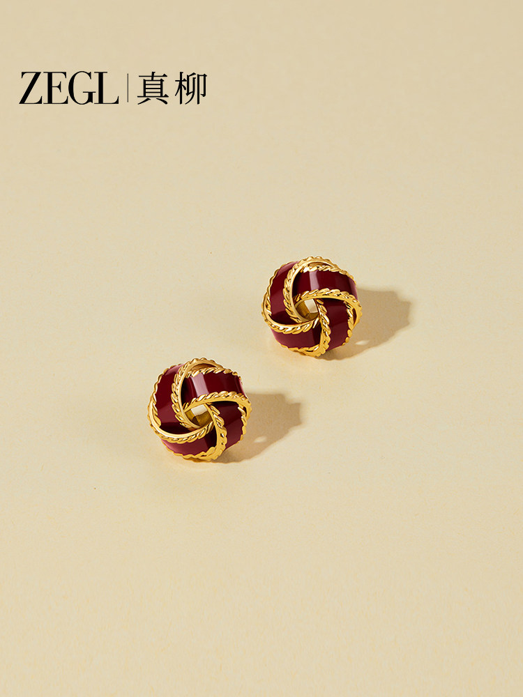 Zegl Red Knot Earrings for Women, Light Luxury, High-End Vintage Stud Earrings, New Popular Style, Elegant and Wealth-Attracting Earrings