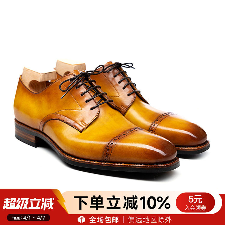 Play! Play with Colors! Goodyear Hand-Rubbed Vintage 1/4 Casual Men's Gentleman Leather Shoes Derby Shoes