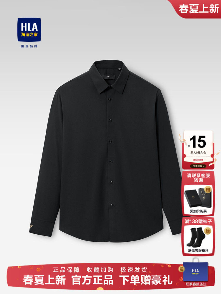 HLA Long-Sleeved White Shirt for Men, Wrinkle-Free Summer Shirt, Simple Business Black Work Shirt for Men