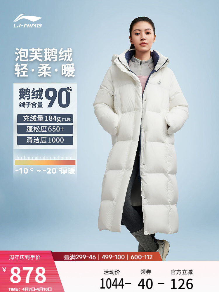 Li-Ning Hot Pot down Jacket | New Winter Long Coat for Women, Hooded Puffer Goose down Warm Sports Top