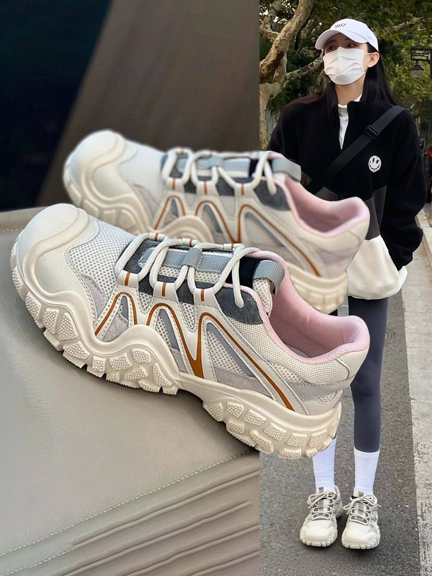 Hong Kong Thick-Soled Mesh Sneakers for Women 2026 Spring and Autumn New Casual Hiking Shoes Breathable Running Shoes Dad Shoes