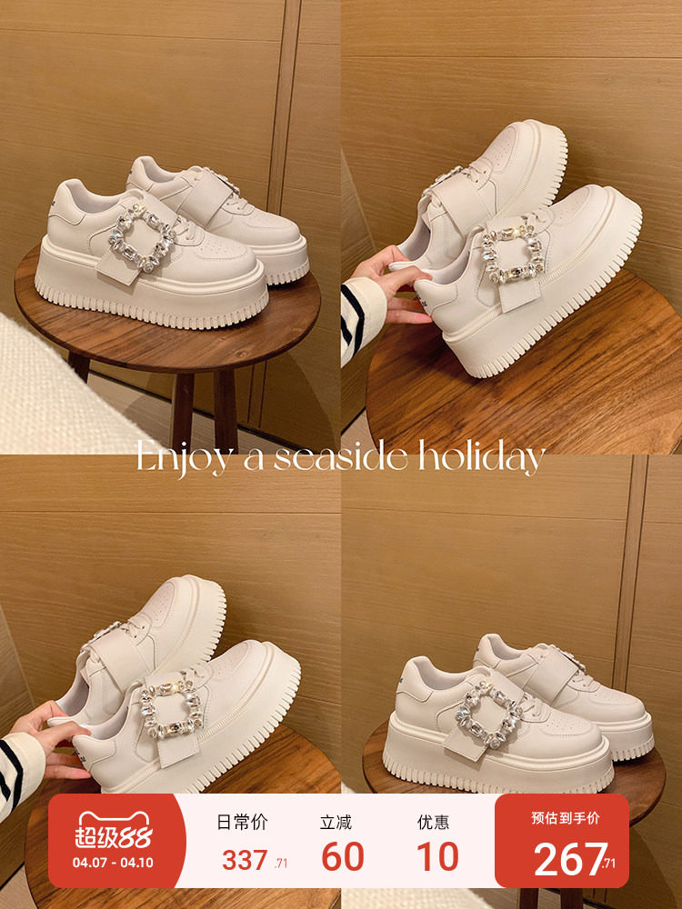[Sheii Su Yinyin] Beloved Diamond Buckle~ Square Buckle Rhinestone Thick-Soled Height-Increasing Casual Sports Sneakers Women's White Shoes
