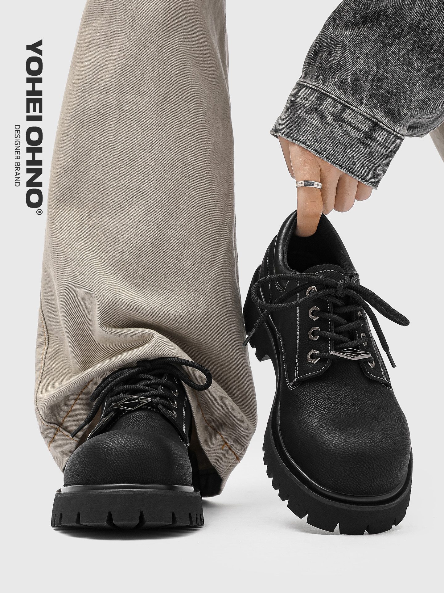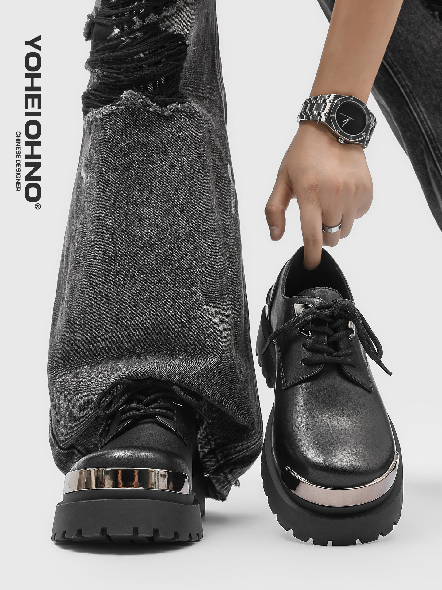 [Same Style as Tan Jianci] Black High-End Derby Shoes for Men, Thick-Soled Height-Increasing Cleanfit Casual Work Leather Shoes