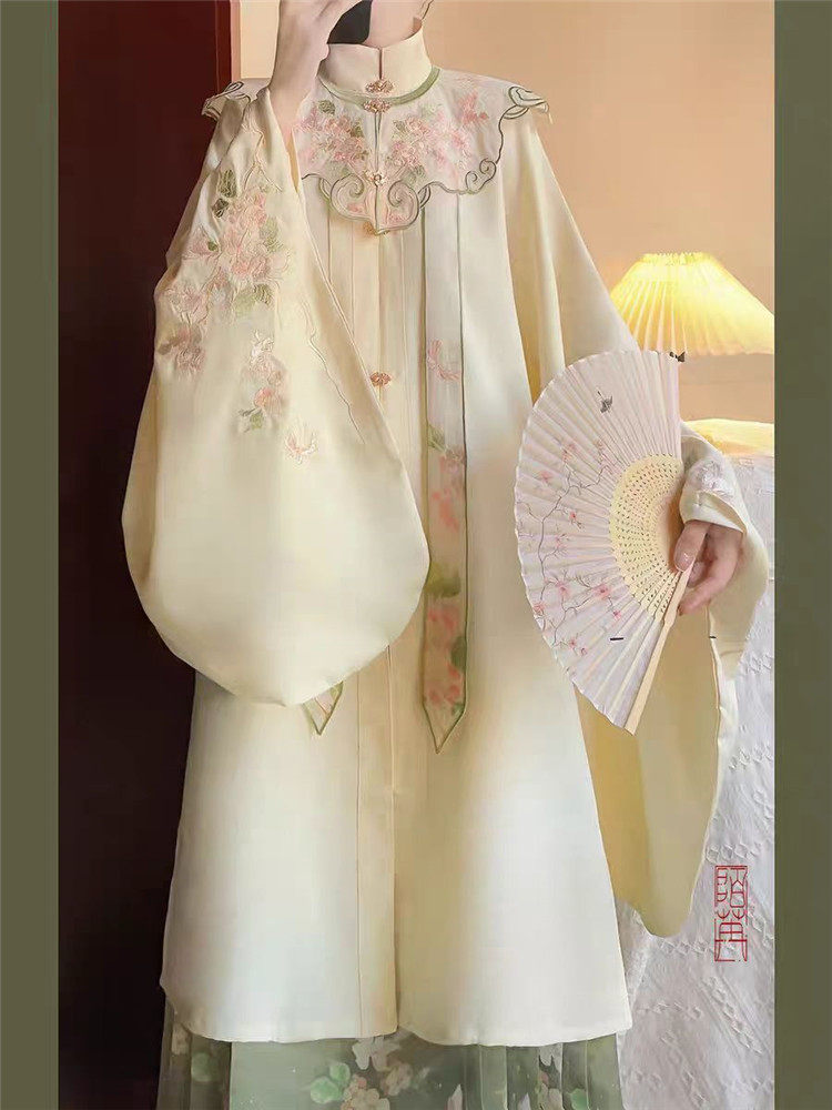 Original Hanfu for Women [Zhiqiu] Ming-Style Double-Breasted Stand-Up Collar Shirt with Cloud Shoulder Embroidery Mamian Skirt Spring/Summer Authentic Ancient Costume