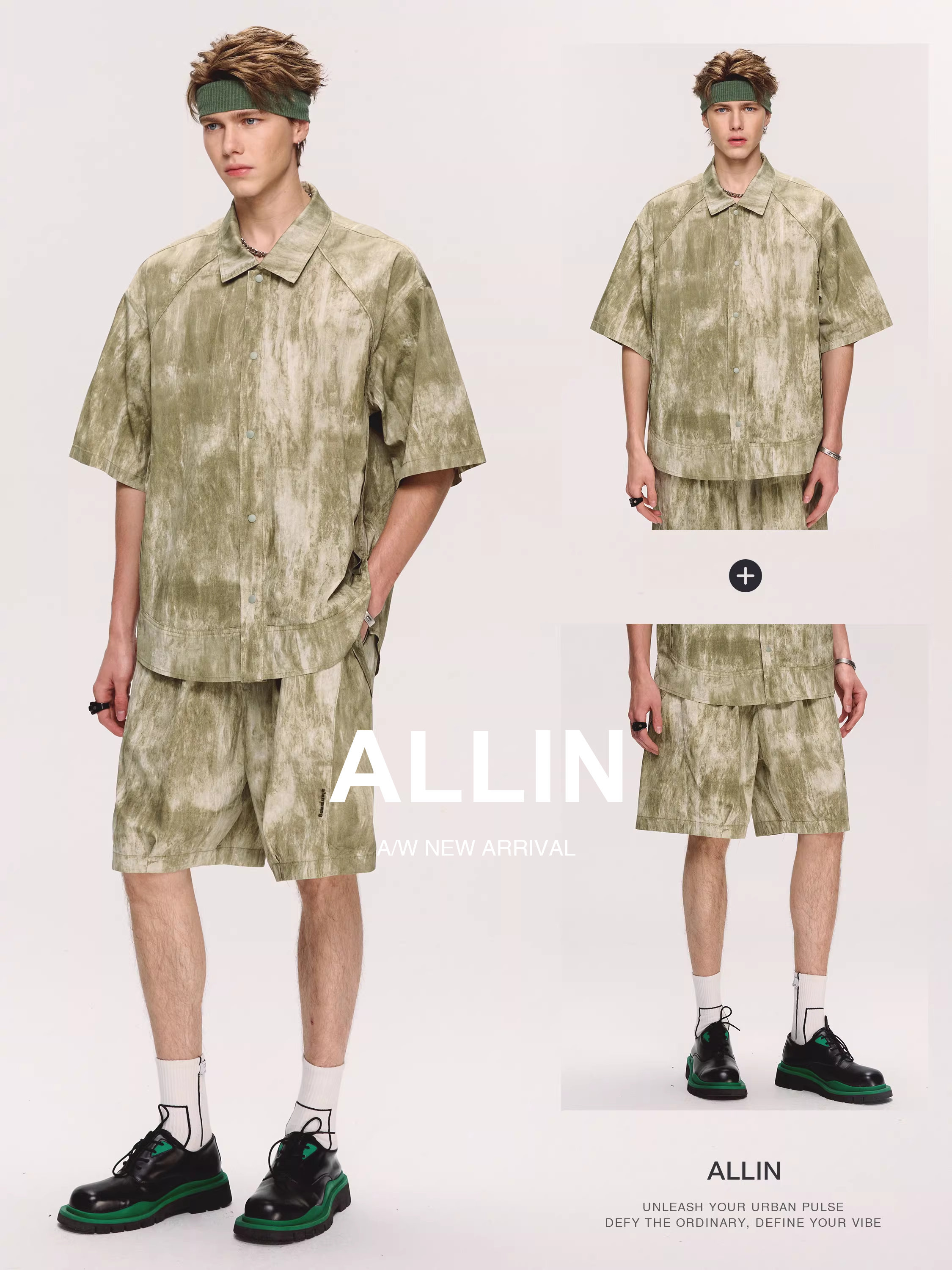 Allin Short-Sleeved Shirt and Casual Shorts, a Complete Set of High-End, Light Luxury Style Summer Men's Two-Piece Suit