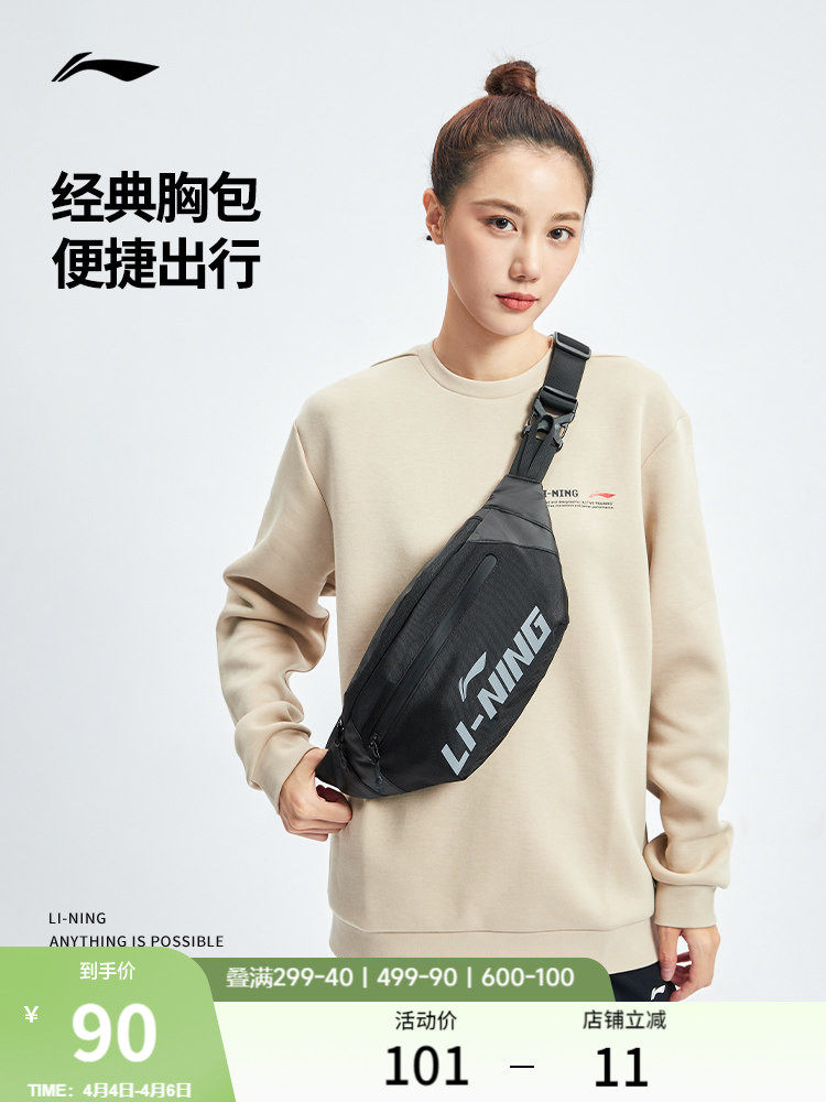 Li-Ning Waist Bag Crossbody Bag for Men and Women, Lightweight Multifunctional Chest Bag, Black Outdoor Sports Hiking Shoulder Bag