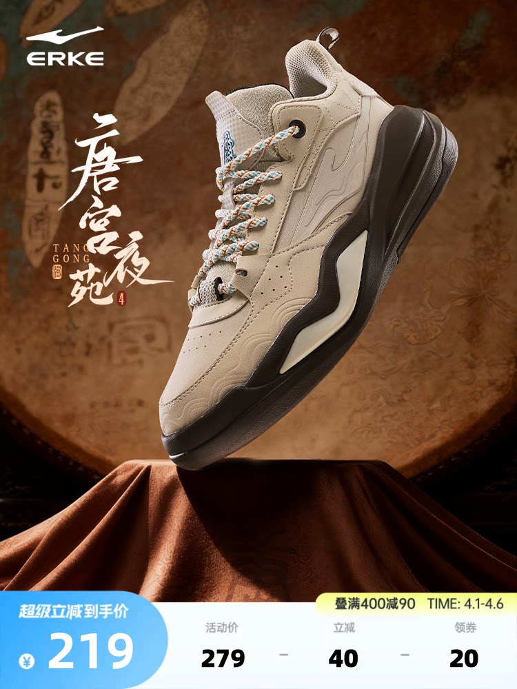 Tang Palace Hongxing Erke Men's Shoes Spring New Sneakers Men's High-Top Casual Shoes Official Authentic Sports Shoes
