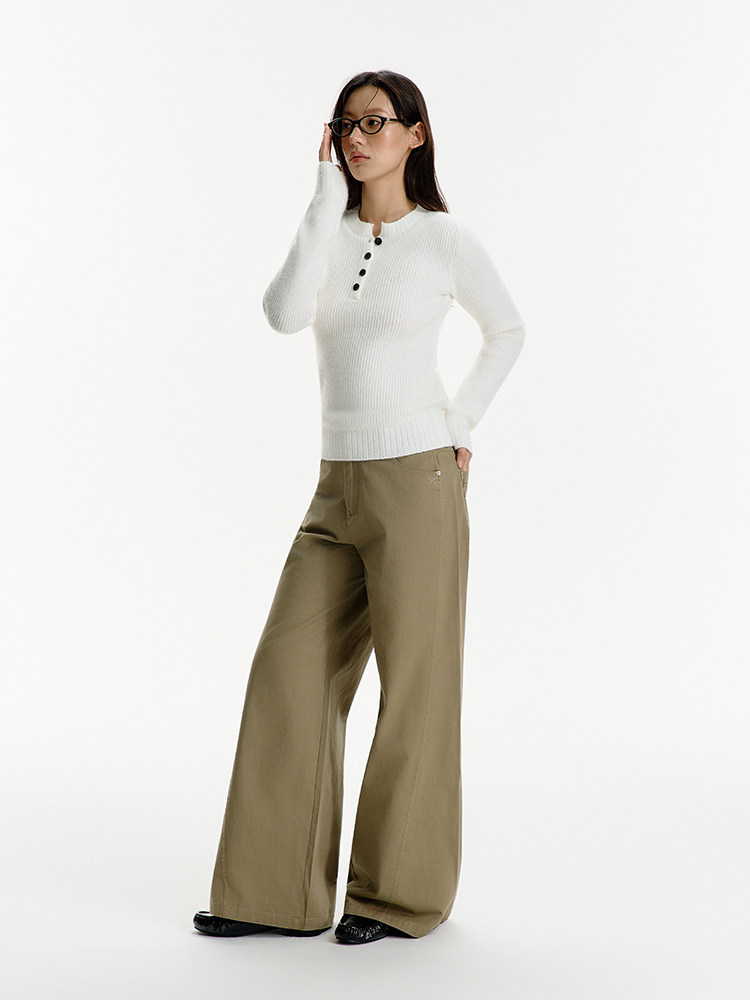 Heyabc American Style Spicy Girl Henry Collar Long-Sleeve Knit Sweater for Women 2025 Versatile Casual Slimming Sweater Base Shirt