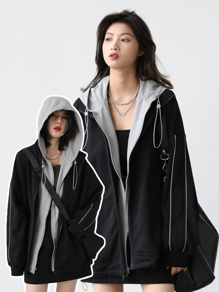 Spring Break Two-Piece Fleece-Lined Thickened Sweatshirt Jacket for Women 2026 Early Autumn New Korean Style Baseball Jacket Trench Coat