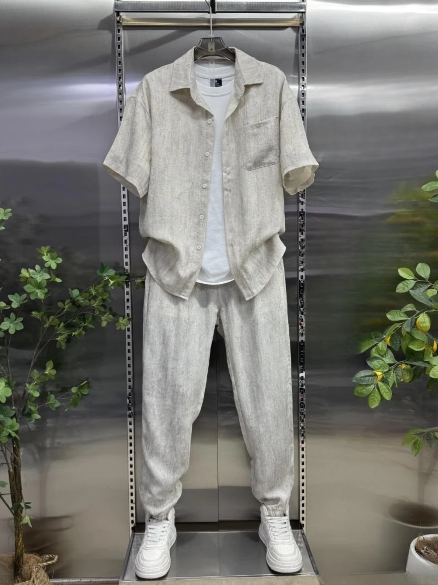 Summer Comfortable Men's Casual Two-Piece Set, Short-Sleeved Shirt and Long Pants, Tie-Dye Sports Suit, Popular High-Quality Men's Clothing