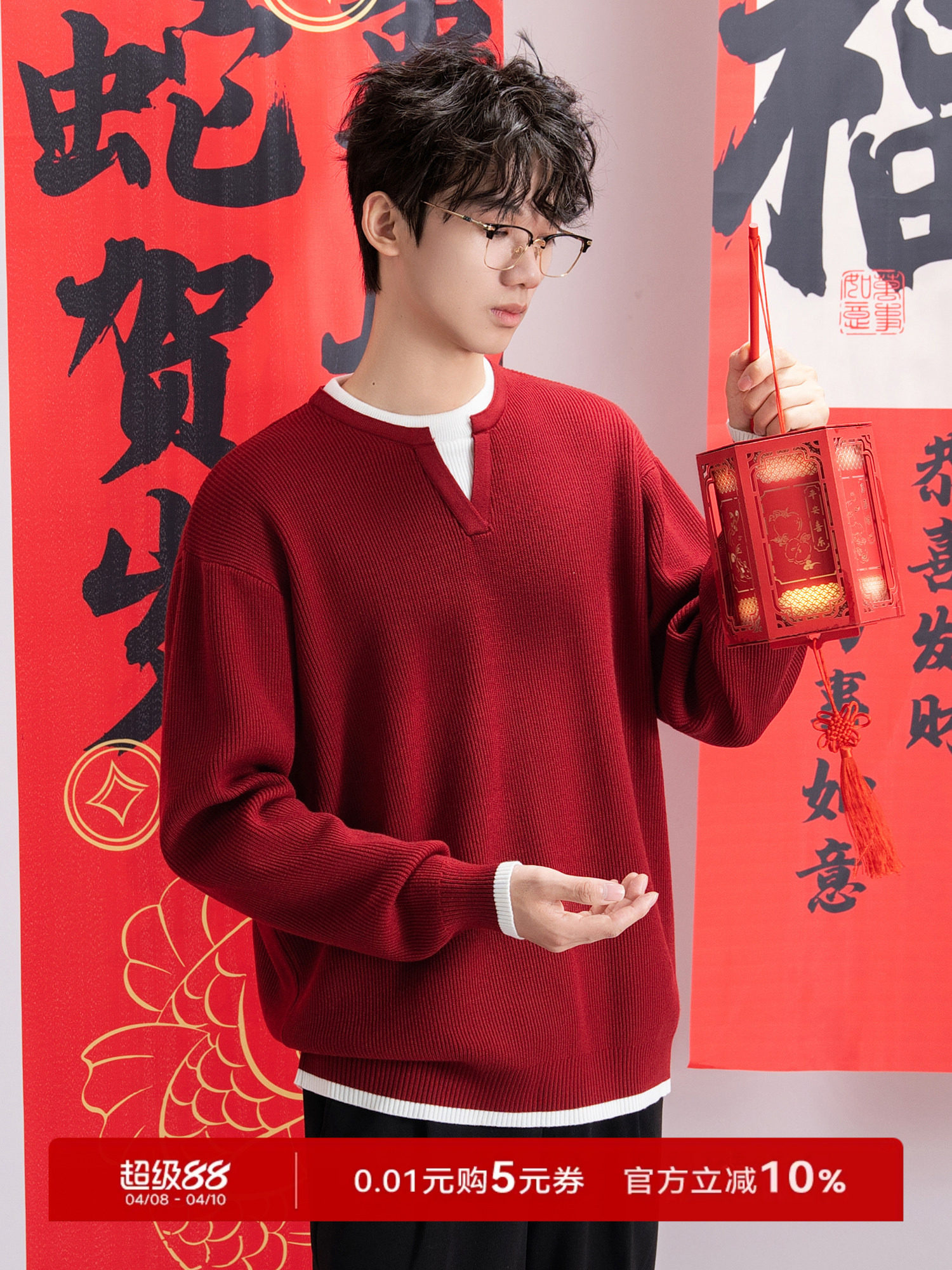 Navy Blue Fake Two-Piece Regular Shoulder Short-Sleeve Polo Shirt Men's Summer Outfit Complete Set Ootd Outfit Heavyweight T-Shirt