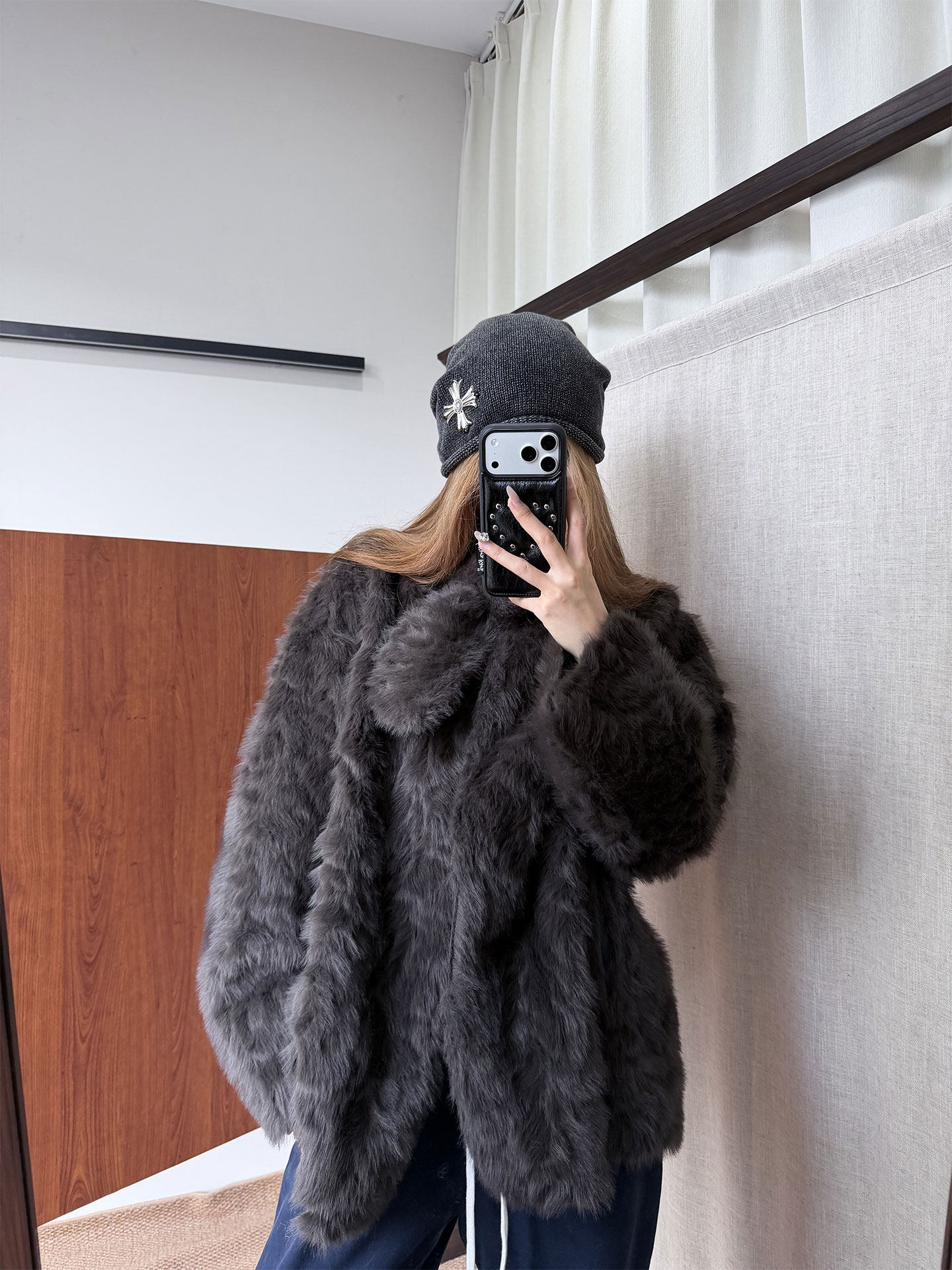 Pd's Greatest Work, Fur Integrated with Leather, High-End Feel, Slimming, Age-Reducing, Atmospheric Fur Coat Jacket 0229