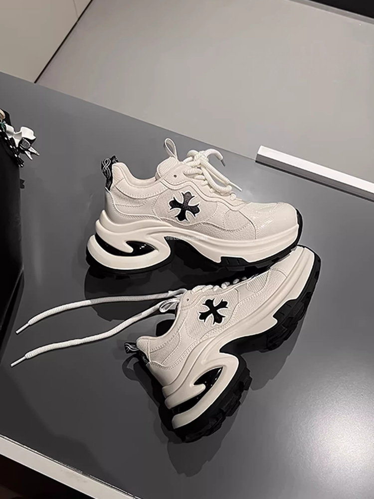 Hong Kong Style Versatile Height-Increasing 7.5cm Thick-Soled Dad Shoes for Women 2025 Spring and Autumn New High-End Sports Casual Shoes