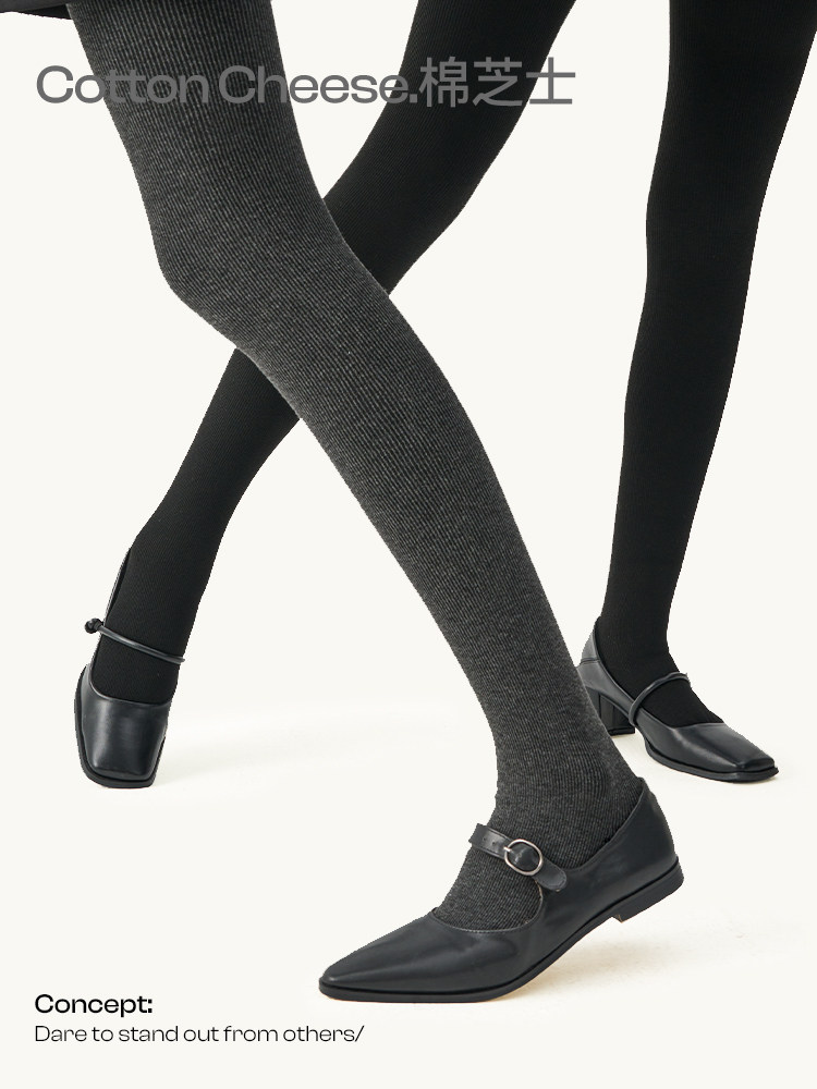Cotton Cheese Cloud Micro-Pressure Pantyhose for Women, Autumn and Winter Outerwear, Black and Gray Slimming Gray-Tone Butt-Lifting Leggings