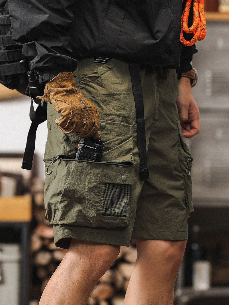 American-Style Urban Outdoor Commuting Functional Cargo Shorts for Men, Summer Trendy Casual Pants, Thin Multi-Pocket Five-Point Shorts